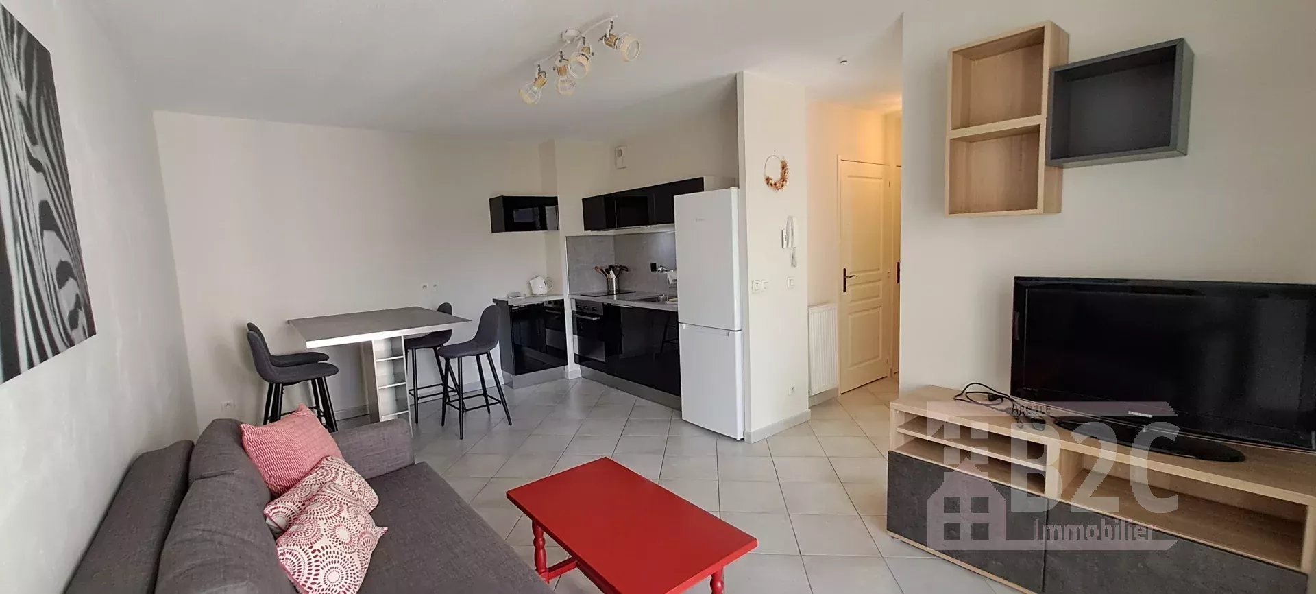Résidence " le Panoramique " proche de la clinique des Cèdres, au 2ème étage avec ascenseur, très joli deux pièces meublé de 40 m² très lumineux, balcon avec vue sur jardin intérieur. Comprenant une entrée avec placard desservant une chambre (placard et accès balcon), une cuisine équipée et aménagée ouverte sur séjour, une salle de douche (douche, meuble vasque, arrivée MAL), WC séparés. Interphone, commerces, bus, tram, accès Rocade sud.